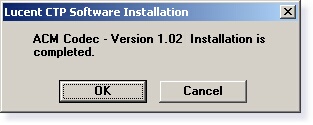 | 5. | Once the codec has registered, the following prompt will appear. Click OK. The Lucent Technologies window will close, although there may be a brief delay. The delay is normal. |