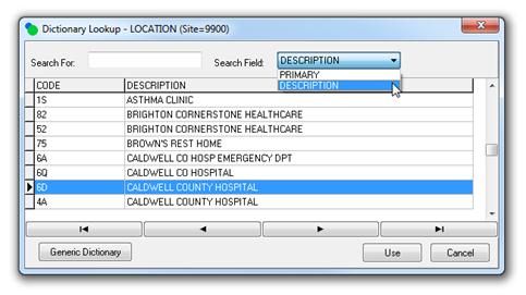 Dictionary lookups can now be searched and sorted by PRIMARY code or DESCRIPTION. The