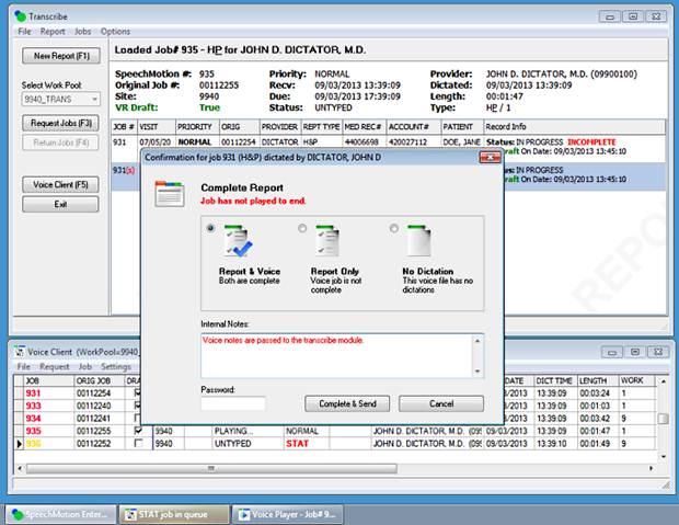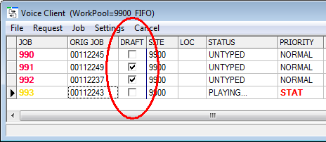 When the Voice Client receives a STAT job, the task button flashes for 30 seconds. Added: New “DRAFT” columns in voice client and voice managerVoice Manager and Voice Client now indicate jobs with associated VR draft content.