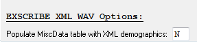 Voice Import support for ExScribe XML/WAV format Additionally, field mapping supports passing data from the XML import file to an outbound XML file without having to store the data in the report table (see. CUSTOM device interface type). A new parameter on the Misc tab of the voice import controls if the miscdata table with be populated by the EXSCRIBE_XML_WAV voice import. The parameter is in the ‘EXSCRIBE_ XML_WAV Options’ section and is labeled ‘Populate MiscData table with XML demographics’. Set this to ‘Y’ to populate the miscdata table.