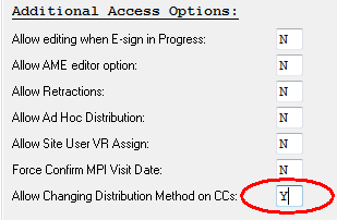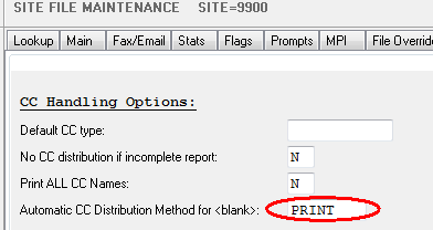 An override option is available for sites that prefer to work the old way. ‘Automatic CC Distribution Method for <blank>’ is on the Misc tab in Site File Maintenance. The default is PRINT. This can be changed to NONE to get the previous behavior for automatic CCs with a <blank> distribution method.
