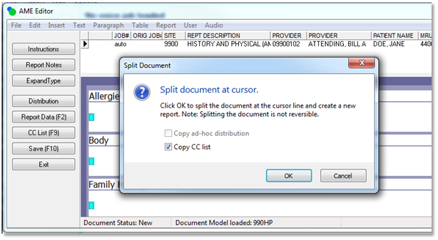 Enterprise Client Fixed: Batch Printing HOLD QueuesThe SpeechMotion documentation states: Placing a document on HOLD will keep the document from printing. A document placed on HOLD will reload the next time documents are imported to Batch Print. Placing a document on HOLD in Batch Print would keep the document from printing but the document would not reload the next time users open Batch Print. This issue has been resolved. Documents placed on HOLD will now be available in the list of current documents in Batch Print. Changed: New Split Document dialog and optionsSplitting documents in editor displays a new dialog box with options.