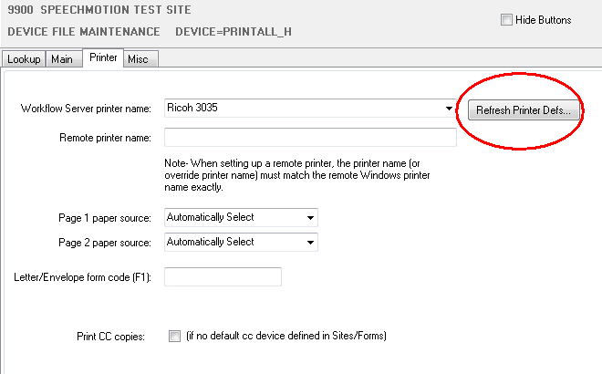 printer definitions. New printers do not show up in the printer selection until [Refresh Printer Defs…] is ran.