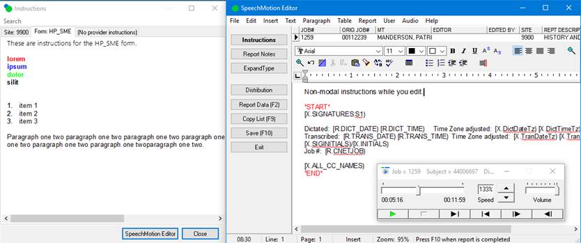The Instructions screen can remain on display while editing in Report Data Screen, AnyModal Editor, SpeechMotion Editor, and QA Auditing Editor.
