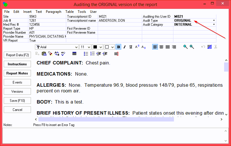 AME had previously applied auto capitalization by default. Changed: Site, Form instructions can now display while editing documents in editorThe Instructions button is now highlighted in bold in the Report Data Screen, AnyModal Editor, SpeechMotion Editor, and QA Auditing Editor when there are site, form, and/or provider instructions for a report.