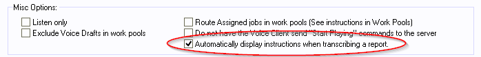 The Instruction screen can now be automatically opened when starting a new report in the Transcribe module or when opening a report in the Review Edit module.