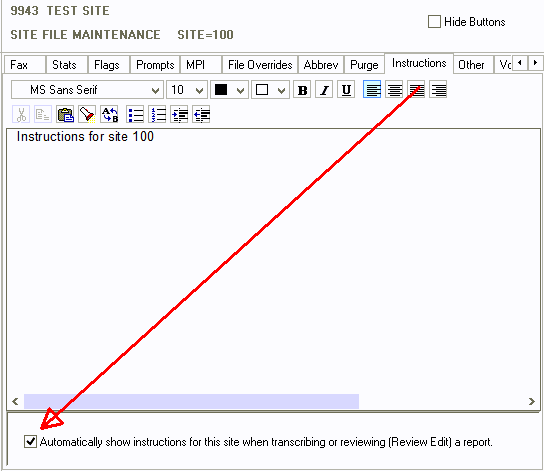 tab in Site File Maintenance, ‘Automatically show instructions for this form
