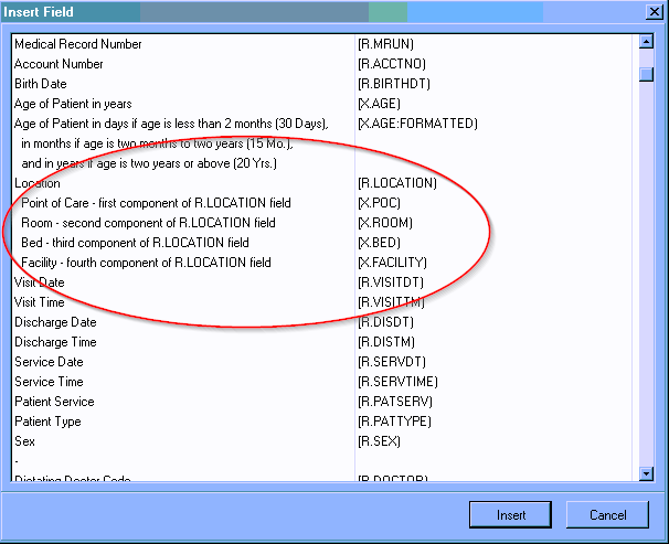 The purpose of this new GETPIECE is to return a component value from a field that contains multiple values that are separated by a delimiter character. A use for this function would be to fill in a field on the RDS with just the room number or point of care from the location field in the MPI table.