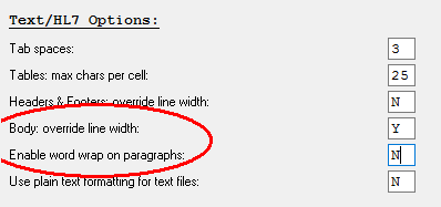 Set this option to ‘N’ will ignore the Max Line Width value and instead generate lines as they are formatted in the RTF document. This is recommended if tables are used in the document body.