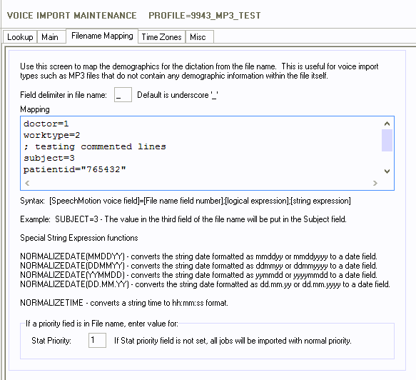 name, the value for stat priority if priority is in the file name, and for