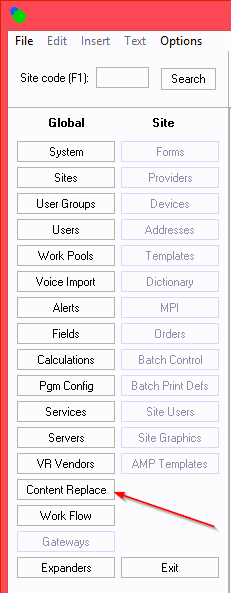 Content Replace button in Setup.