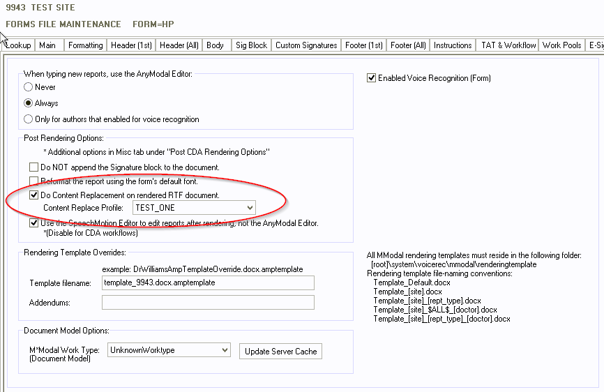 In Forms File Maintenance, go to the Voice Rec tab.