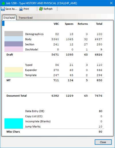 transcription only updates the billing/payroll data (STATS table).