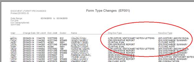 report Form Type Changes (EF001) was incorrectly displaying the new form type