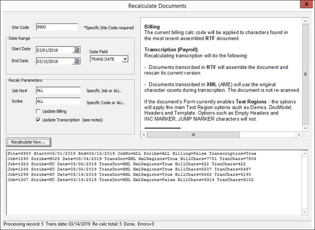 transcription editing. Previously, recalculation would