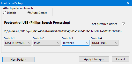 Added: Foot pedal auto detect and preferred device option when