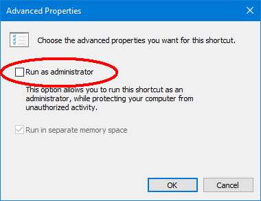 We recommend users disable Run as administrator If