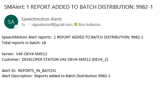 The email shows the number of reports added to the Batch