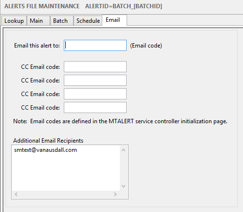 an alert and those five recipients had to be set up in the MTALERT