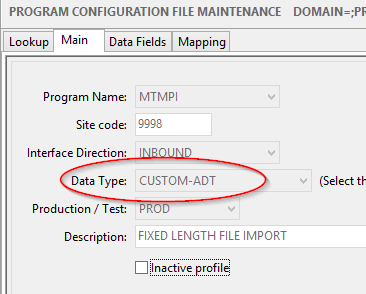 as the Data Type on the Main tab in Program Configuration.